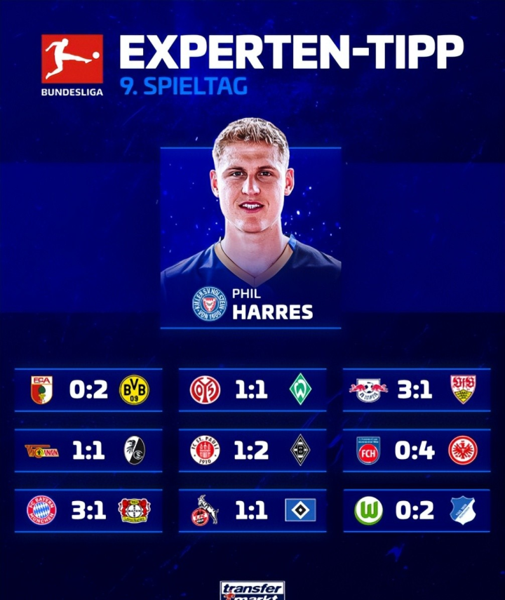 就在赛前,来自德国的权威足球媒体《转会市场》也发布了每周一期的娱乐预测,来为本轮比赛进行预热。