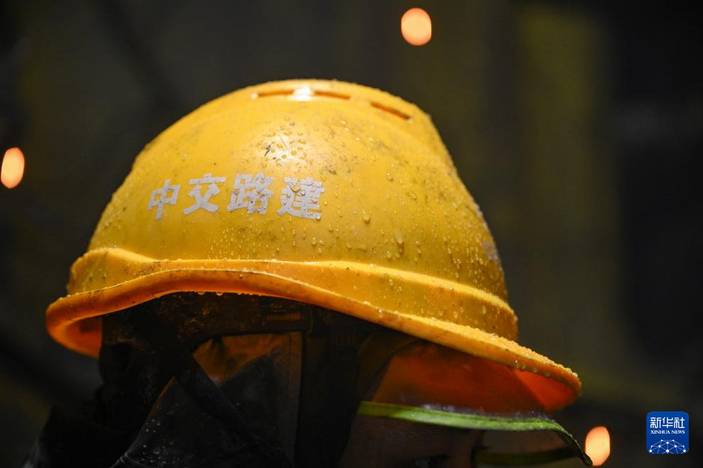 来自甘肃的工人王更兴在昭温公路西天山特长隧道左洞内施工(10月5日摄)。
